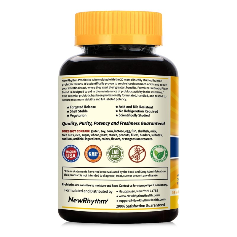 NewRhythm Probiotics 50 Billion CFU 20 Strains, 120 Veggie Capsules, Targeted Release Technology, Stomach Acid Resistant, No Need for Refrigeration, Non-GMO, Gluten Free
