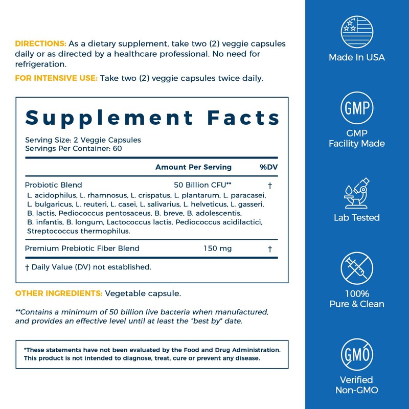 ★50 Billion 20 Strains Targeted Release Formula NewRhythm 50 Billion Probiotics Capsules is Scientifically Backed and Clinically Proven, Formulated by Doctor with 50 Billion Living Organisms Per Serving, Featuring Targeted Release Technology to Help Probiotics Survive Stomach Acids and Reach Your Intestinal Track. Organic Prebiotics Fiber is also Included In the Formula.