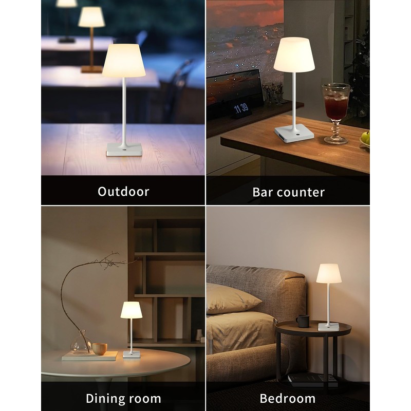 - Portable Cordless Design: The LED touch table lamp is elegantly designed with soft lighting, creating a cozy and romantic atmosphere. It's medium weight and it fits in your hand, making it suitable for various occasions such as restaurants, bedrooms, bathroom, bars, outdoor gatherings, campsites, and cafes. This multi-functional, portable, waterproof cordless desk lamp is an ideal choice.