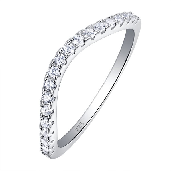 Newshe Curved Wedding Bands for Women Stacking Sterling Silver Eternity Rings Cz Wishbone Size 5