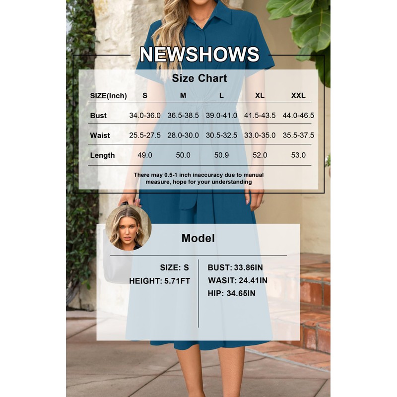 - Business Casual Outfits Design: Collar short sleeve, elastic waist design flatters a grace silhouette, long flowy hem allows easy movement, side pockets for convenient, professional yet stylish, exude your confidence in the workplace