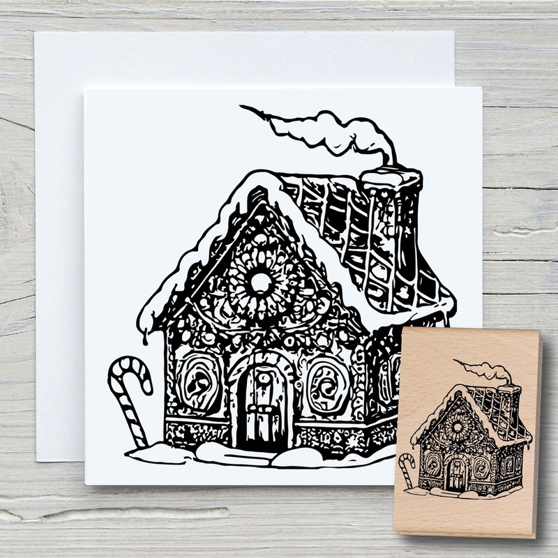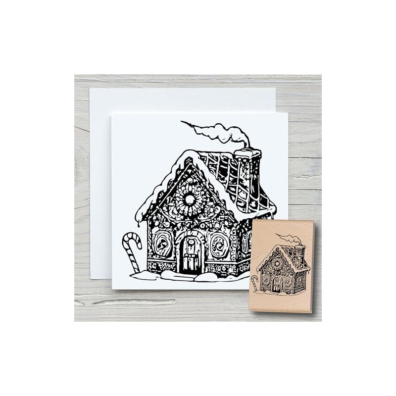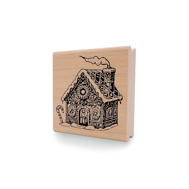 Newstamps Gingerbread House Motif Stamp Made of Wood & Rubber for Cards and Gifts, Wooden Stamp for Christmas, Christmas Card, Advent, Scrapbook, Textile Stamp, Decoration, Friends