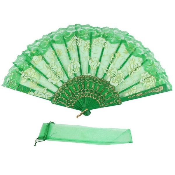Newstarfactory Lace Flowers Design Plastic Folding Hand Held Fan (Green)