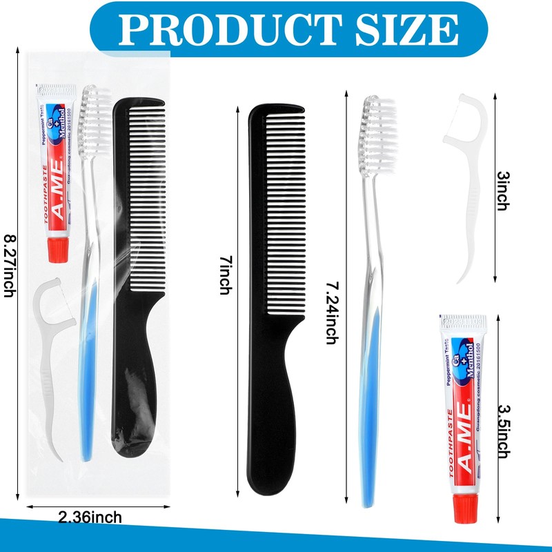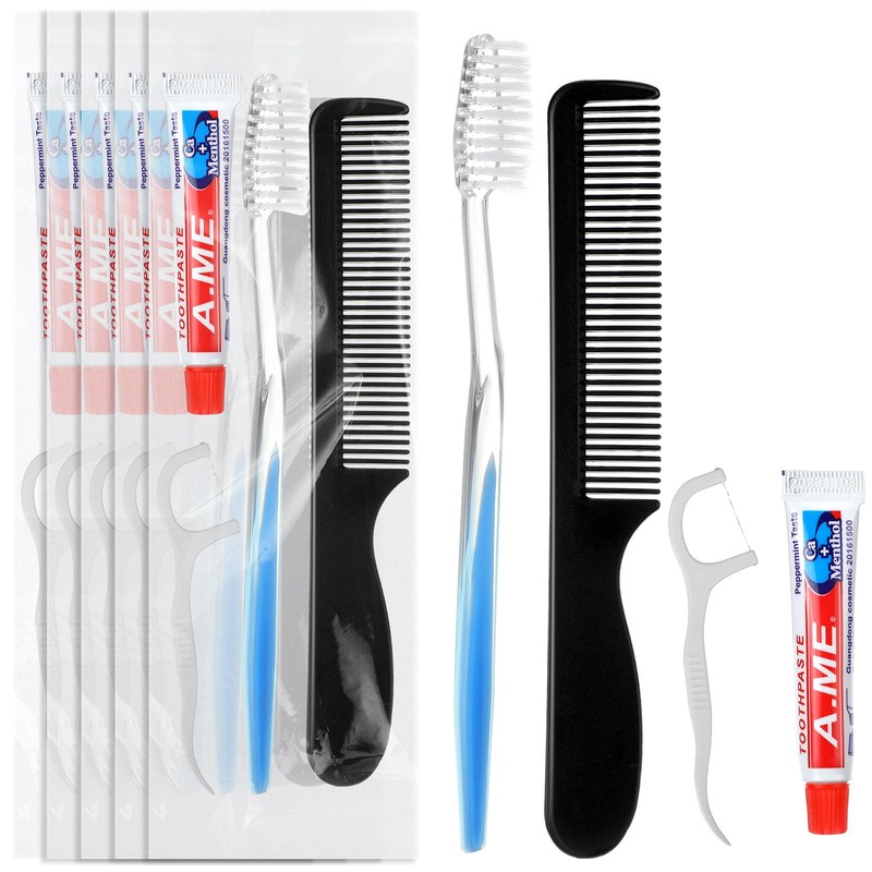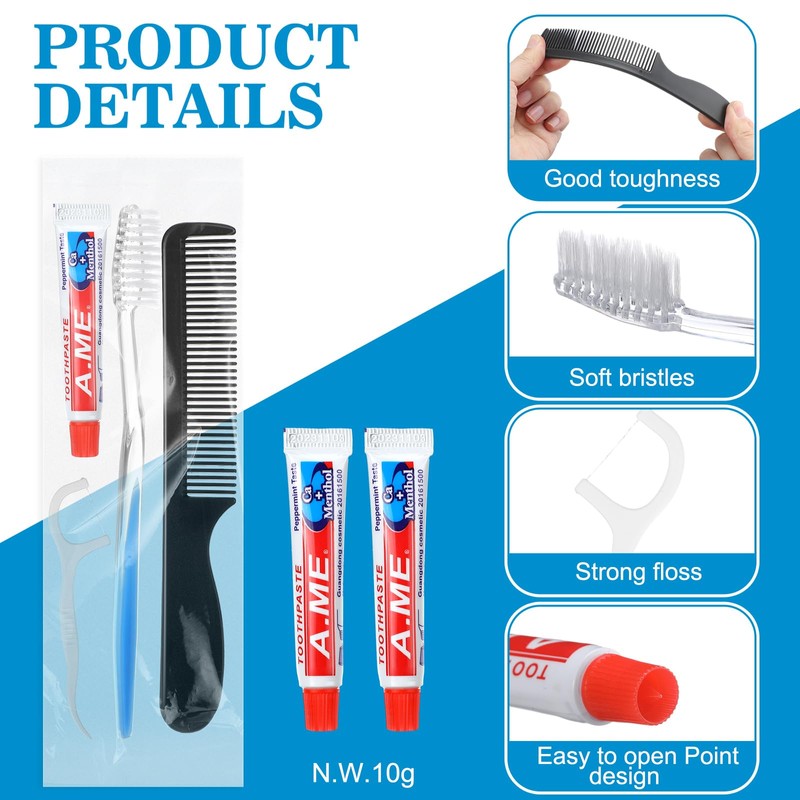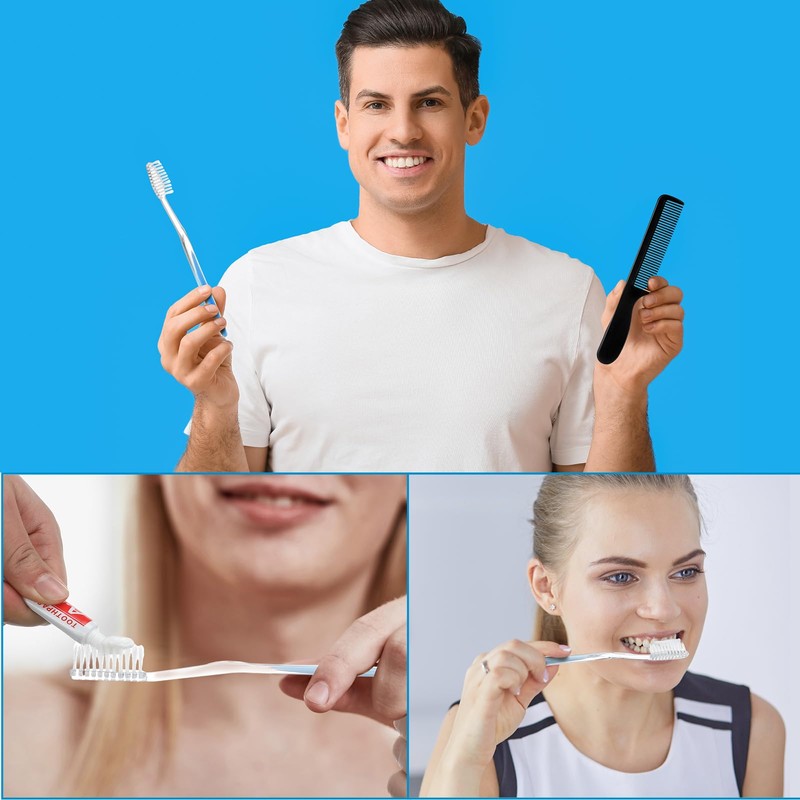 - Quality Material for Ideal Care: designed with your health in mind, our soft toothbrush features soft bristles for a gentle yet effective clean, while the 10g toothpaste ensures a fresh, clean mouth; The sturdy dental floss helps you keep your dental hygiene in check, easily removing food remains; Lightweight and compact, our combs are ideal for maintaining neat, tidy hair, keeping you looking tidy and presentable