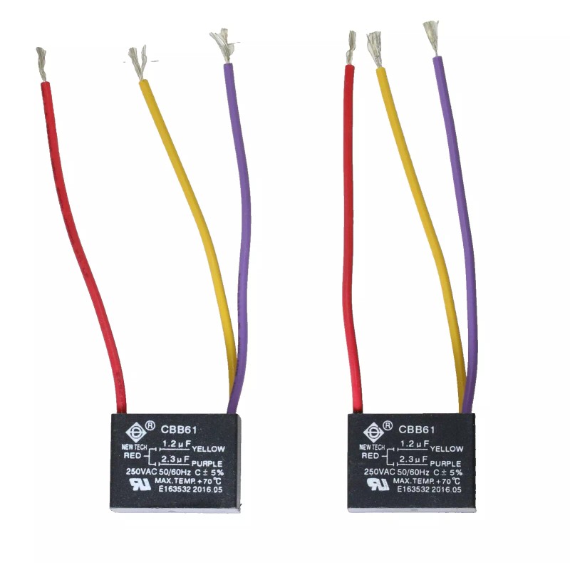 NewTech CEILING FAN CAPACITOR CBB61 1.2uf+2.3uf 3WIRE QTY 2