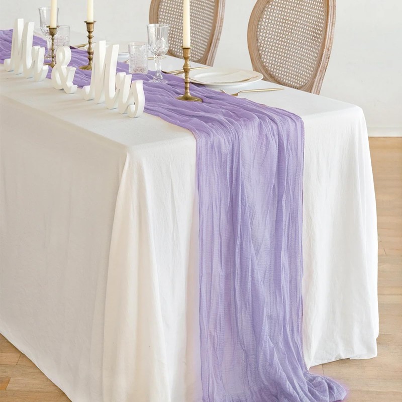 Newthinking 4 Packs Cheesecloth Table Runner, 10 ft Purple Cheesecloth Table Runner, Rustic Gauze Fabric Table Runner for Wedding Table Decoration Holiday Party, 90X300CM