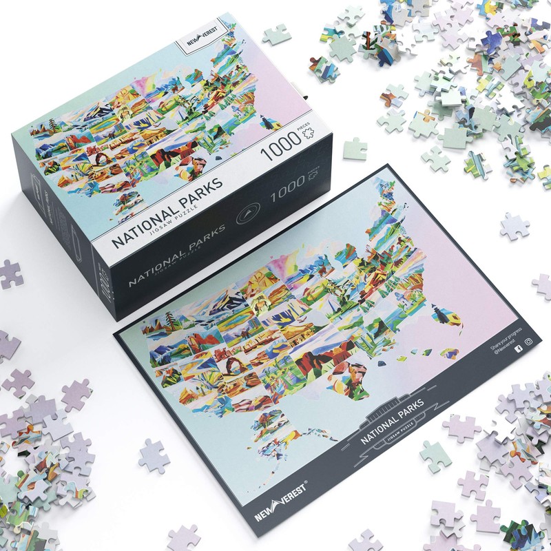 Newverest Jigsaw Puzzles 1000 Piece for Adults, Difficult Puzzles with Unique Hand-Painted Images by Artists - Large 27.5" x 19.7", Include Gift Package Storage Box - US National Parks
