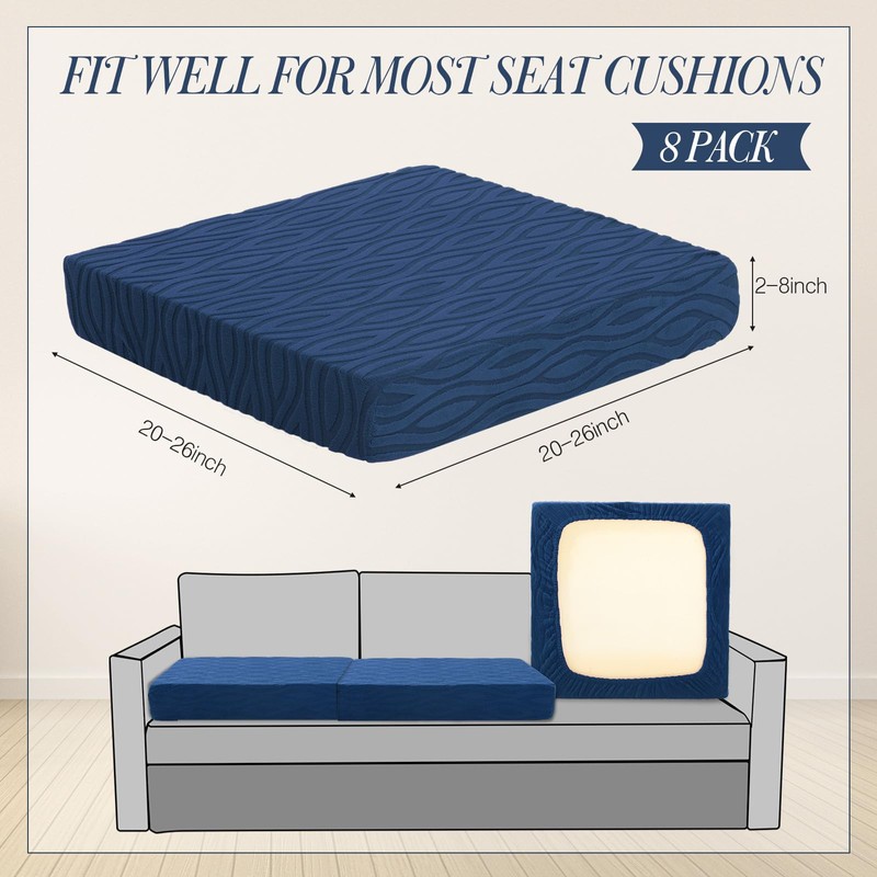 Newwiee 8Pcs Stretch Patio Cushion Covers Outdoor Cushion Covers for Patio Furniture Replacement Couch Sofa Slipcovers Jacquard Textured Soft Fabric Washable Furniture Protector(Navy Blue,Classic)