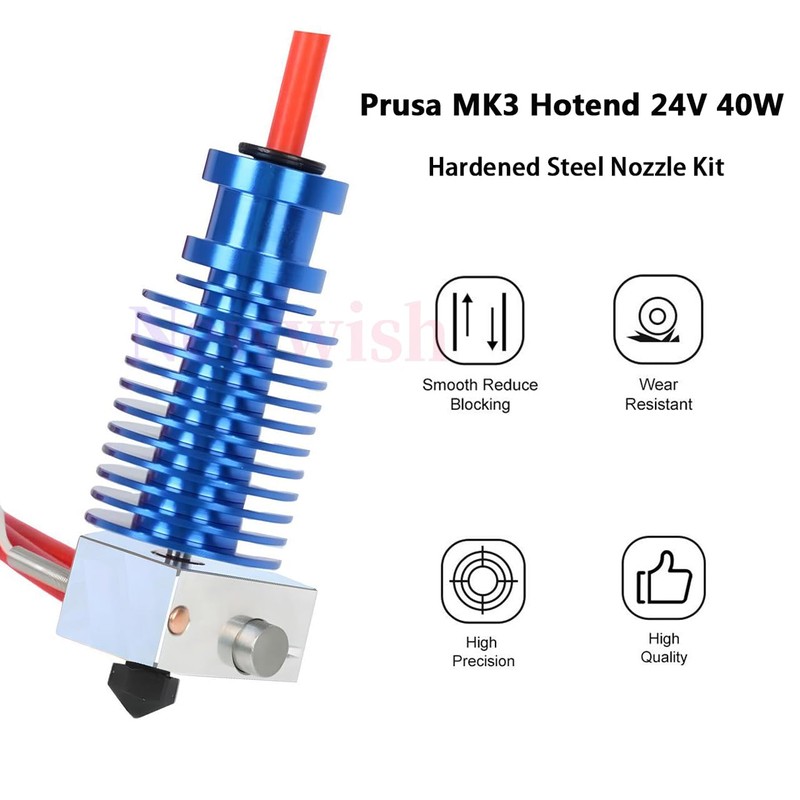 Newwish Prusa i3 MK3S+Hotend 24V 40W Upgrade Kit for Prusa i3 MK3,MK3S,MK3S+3D Printer V6 Hotend 24V Replacement Parts,V6 Bi-Metal Heatbreak,V6 Hardened Steel Nozzle 0.4mm,Heater Block Aluminum.