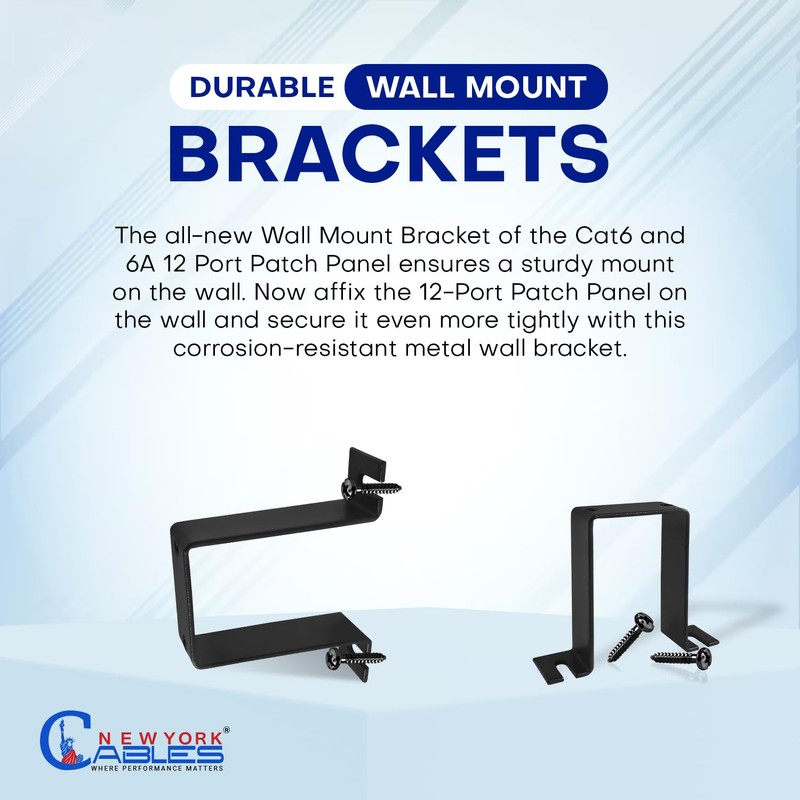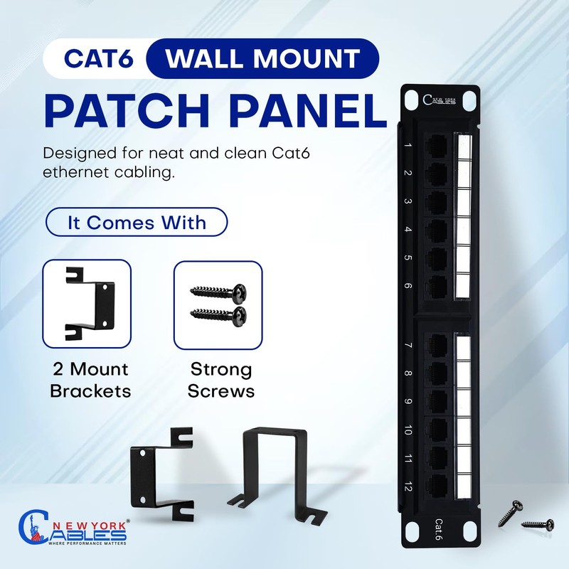 NewYork Cablesยฎ Cat6 12 Port Patch Panel with Back Bar, Cable Ties & Screws (12 Port)