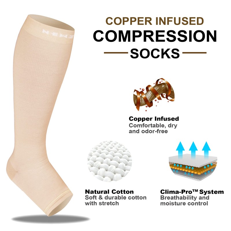 - WHY OPEN TOE? _ Shape-to-Fit Open-Toe Compression Socks allow for easier on & off and for wear with sandals, open toe shoes and open-toed boots! If you love wearing flip flops as your leisure footwear and also like to travel, NEWZILL toeless socks are the perfect gift for you while watching onboard entertainment with a fancy meal or comfort food on the side.