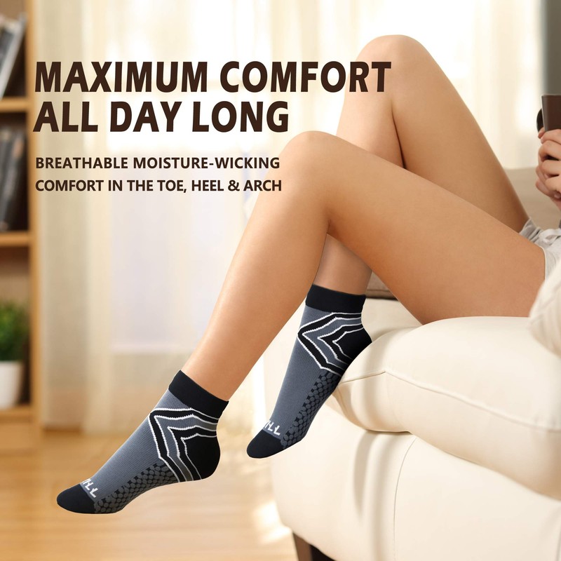 • 🇺🇸【CLIMA-PRO TECHNOLOGY】These ankle compression socks for women are crafted from high-quality fabric, excelling in moisture absorption. Mesh ventilation releases heat, keeping your feet dry and fresh.