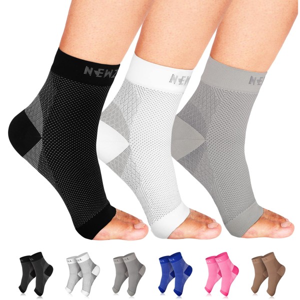 NEWZILL Plantar Fasciitis Socks with Arch Support, BEST 24/7 Foot Care Compression Sleeve, Eases Swelling & Heel Spurs, Ankle Brace Support, Increases Circulation (S/M, Black/White/Gray)