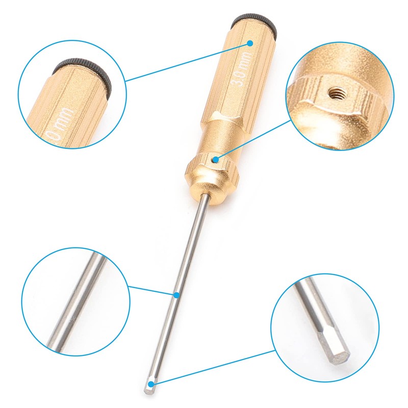 Hex screwdriver tips' Dia is 1.5mm, 2.0mm, 2.5mm, 3.0mm. Light weight, small volume and easy to carry.
