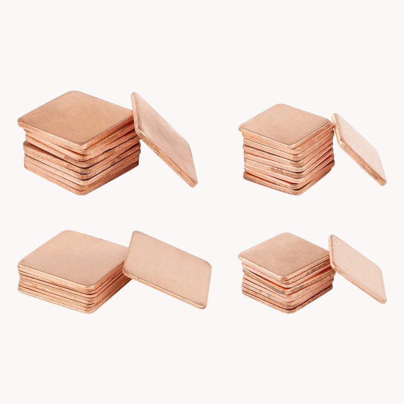 - 4 Sizes Copper Pads: 15 x15 x1.0mm, 15 x15 x1.5mm, 20 x20 x0.8mm, 20 x20 x1.5mm. EACH SIZE 10PCS, 40Pcs IN TOTAL.