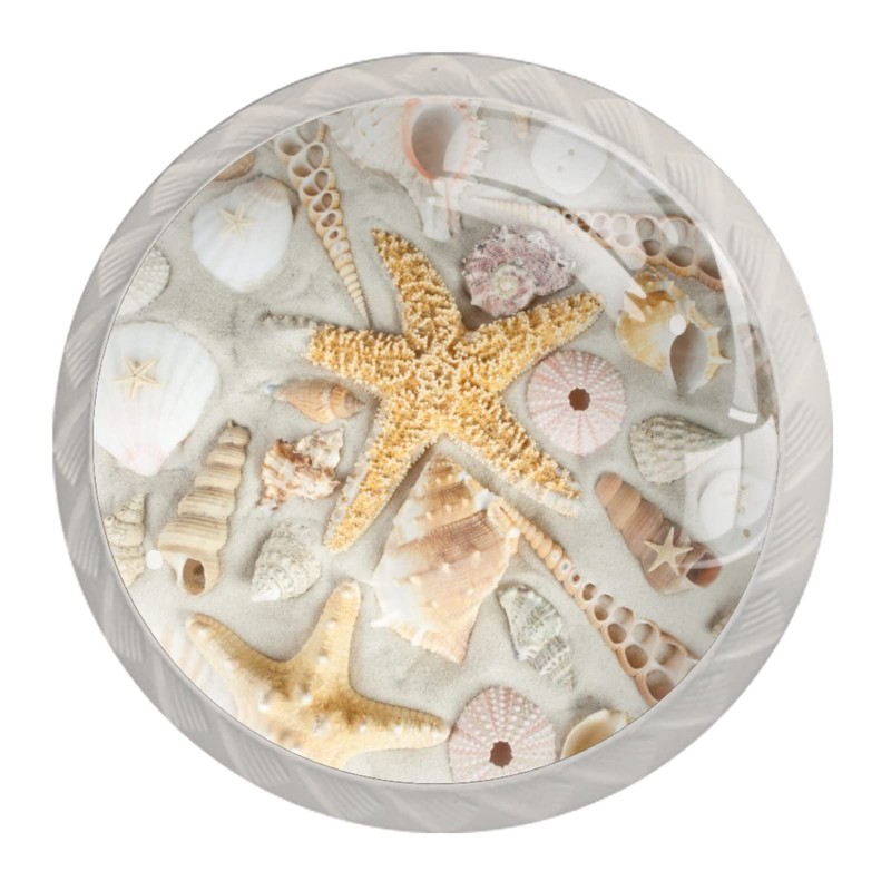 NEWzone 4 Pack Dresser Drawer Cabinet Knobs Seashells on a Sandy Beach Round Shape Crystal Glass Knobs Pulls Handles for Kitchen Wardrobe Cupboard Door Hardware with Screws, 35mm