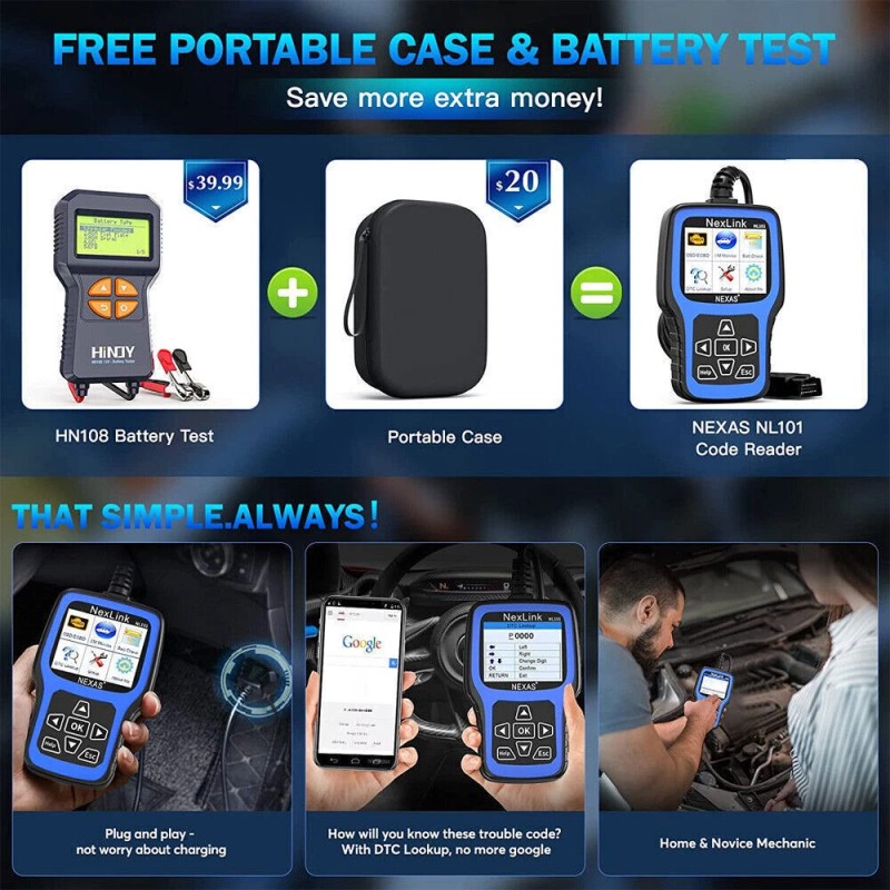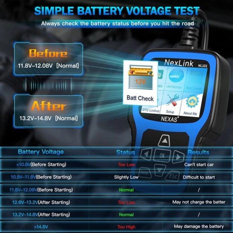 NEXAS NL101 OBD2 Scanner Check Engine Light Code Reader Car Battery Tester Tool
