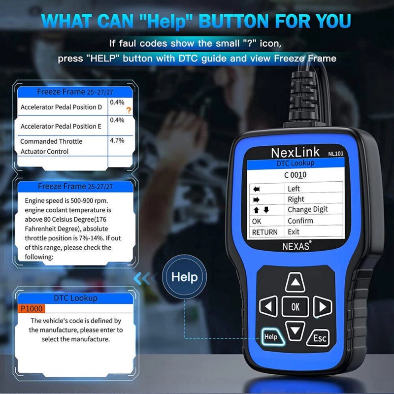 NEXAS Nexlink NL101 OBD2 Automotive Scanner Engine EVAP Battery Car Tool OBDII Diagnostic Scan Tool Item Description: The NexLink NL101 OBD/EOBD+CAN code reader from NEXAS supports 10 modes of OBD tests for a complete diagnosis and quick battery test. When it comes to diagnosing Check Engine issues you’d never go wrong with the new NL101 code reader. It offers such useful information for entry-level Pros and savvy DIYer that they can quickly and efficiently troubleshoot OBD2/EOBD problems on today’s vehicles, meantime also watch out the battery health situation. Top reasons to choose NL101: 1. OBD/EOBD Two modules in one. 2. Live data show in Graph, the data are straightforward to know. 3. Battery check, it is seldom to have in the same price product. 4. Multi-Languages, specially add Finish in it. 5. A special nylon bag for this product, that is the other product doesn't have. Features: 1. Read Codes: Generic, Manufacturer Specific and Pending Codes 2. Clears Codes, Turns off Check Engine Light (MIL) and resets monitors 3. Reads, records, graphs & playbacks live sensor data 4. View Freeze Frame 5. Displays monitor and I/M readiness status (emissions) 6. Retrieves Vehicle information (VIN, CID and CVN) 7. EVAP Test 8. On-board Monitor 9. O2 Sensor Check 10. Battery real-time monitoring (Quickly check the battery health status and indicate the battery power value, tell you whether the battery is good or bad or need to be charged or replaced, give you all battery information) 11. 2.4’’ color screen, Multilingual menu Battery Health Situation Check You Should Know: Unique battery health monitor function gets you know battery power status in 3 seconds: A, <10.8V (before Starting): Too Low; Change your battery, otherwise, might not be able to start; B, 10.8V-11.8V (before starting): Slightly low; Difficult to start, please turn off other electronics and start vehicle to charge; C, 11.8V-12.8V (before starting): Normal; D, 12.8V-13.2V (after starting): Too Low; Might not be able to charge the battery, please check other electrical load; E, 13.2V-14.8V (after starting): Normal; F, >14.8V: Too High; Might damage the battery, please check the engine stabilizer. Live Data Show in Graph: Nexas NL101 OBD2 Scanner Support Languages: English, French, Spanish, German, Italian, Russian, Portuguese, Finish Nexas NL101 Supported Car list: American (USA) car: Compatible with Standard OBD2 Cars from 2001 to Now: for Chrysler, for Ford, for GM, for Jeep European car: Compatible with Standard OBD2 Cars from 2004 to Now: for Alfa Romeo, for SAAB, for Acura, for Opel, for Audi, for Seat, for Bentley, for Skoda, for Daewoo, for Benz, for Daihatsu, for Land Rover, for BMW, for Vauxhall, for Volvo, for VW, for Ford, for Jaguar France Car after 2006: for Citroen,for Fiat,for Renault,for Peugeot Not Support for Renault Clio 2/Megane/Dacia Logan, Japanese car Compatible with Standard OBD2 Cars from 2005 to Now: for KIA, for Isuzu, for Honda , for Mitsubishi, for Hyundai, for Dacia, for Lexus, for Mazda, for Nissan, for Subaru, for Suzuki, for Toyota Chinese car: Compatible with Standard OBD2 Cars from 2008 to Now: for BYD, for Chery, for Geely, for Great Wall, for Karry NOTE: If you don't know your car is supported or not, please Leave us message in below format, we will reply you within 8 hours. for example : xx, 2005, 2.0cc, Diesel Warning: Not Support Russian Cars VAZ,UAZ,LADA ; Not works with trucks For Ssangyong Actyon , from 2009 to 2017 years. For Ssangyong Korando , 2.0 TD Diesel , from 2013 to 2017 years. For Ssangyong Kyron , 2.0 Diesel , from 2010 to 2017 years. For Ssangyong Rexton , 2011 to 2017 years, Not Support Opel Corsa c 2004 1.3 CDTI Not Support vw golf 4 2002 Product Size |