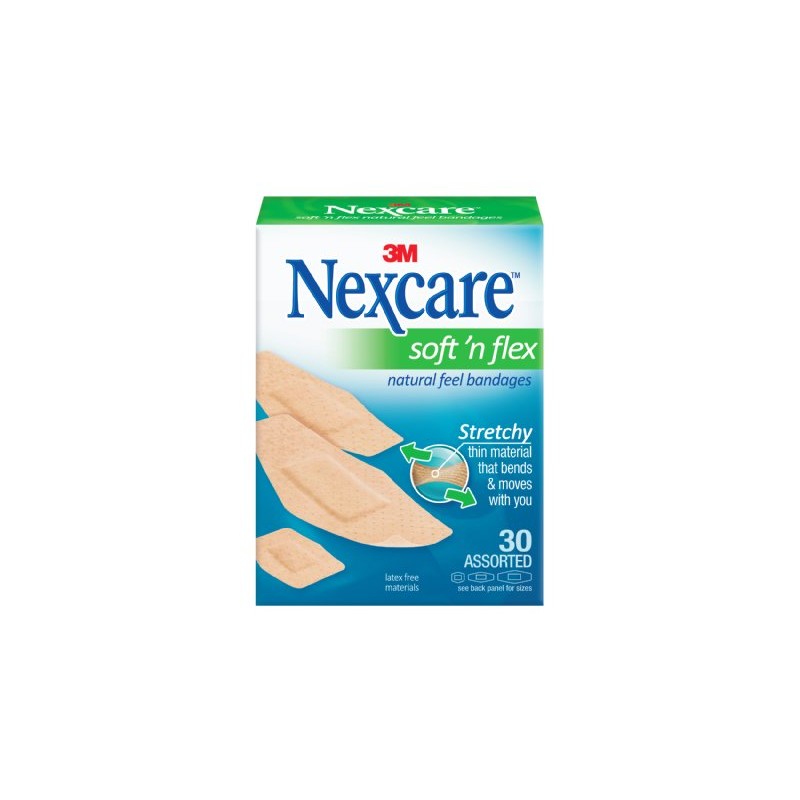 Nexcare Comfort Flexible Fabric Bandage, Latex Free, Assorted Sizes, 30 ct Packages (Pack of 4)