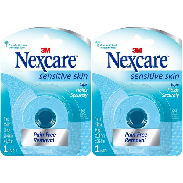 Nexcare Sensitive Skin Low Trauma Tape, 1 in x 4 yd, Pain-Free Removal, Hypoallergenic, 2 Rolls