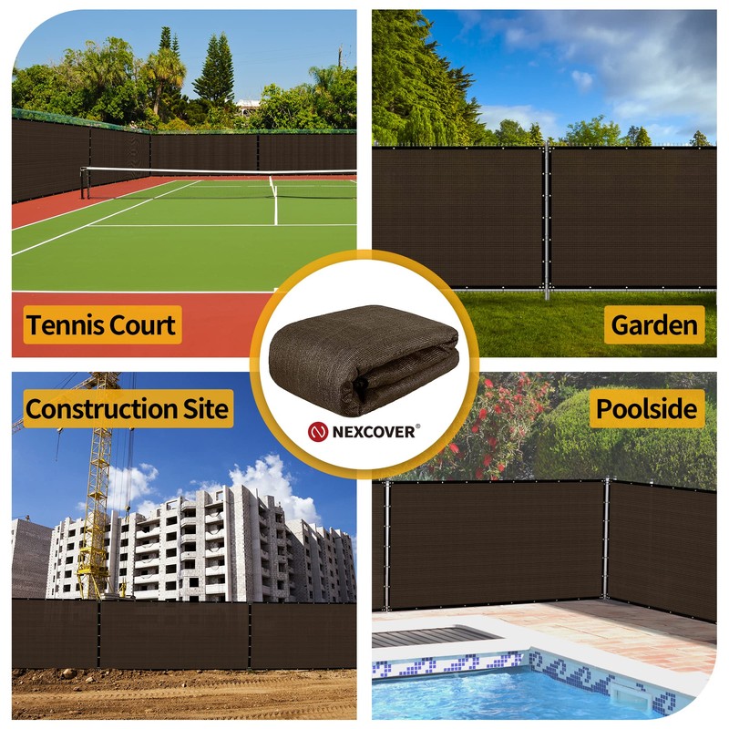 - 【SUPERIOR QUALITY MATERIAL】: UPGRADE fence privacy screen is constructed of 150 GSM high density polyethylene knitting net. Outdoor fence covering privacy measures exactly 12' long by 6' tall, right for a fence that’ s 6 ft tall. And every piece is standard size to ensure two pieces can match up perfectly. Fabric has been treated with UV stabilized compound, protecting fence screen from dried out, tearing and fading, as well as extending the lifespan.