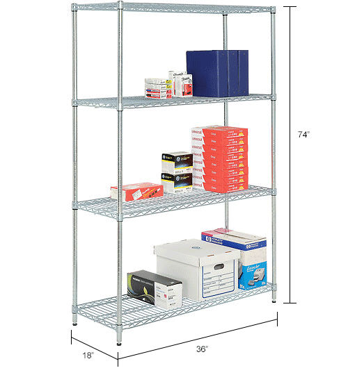 Nexel Medium Duty Wire Shelving Unit, Zinc Chromate, 36"W x 18"D x 74"H