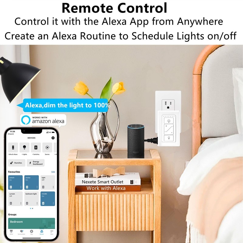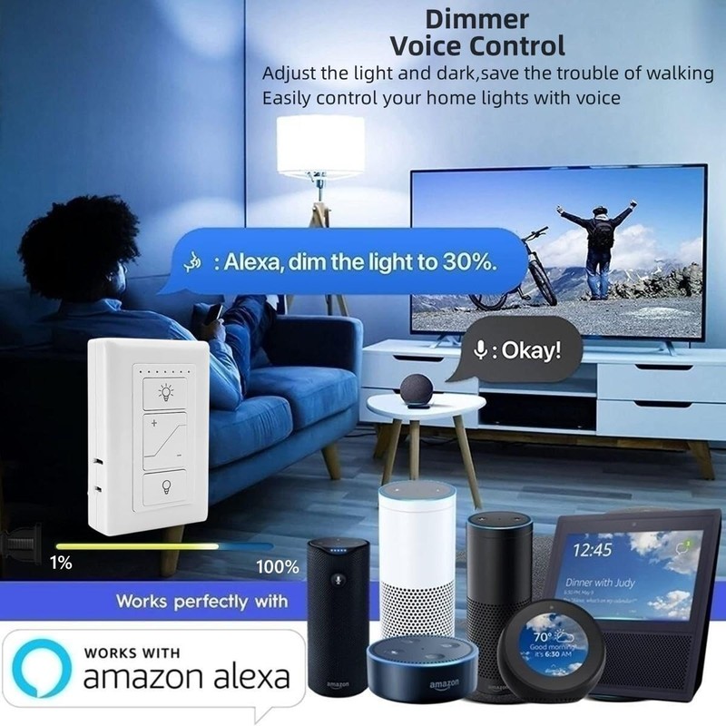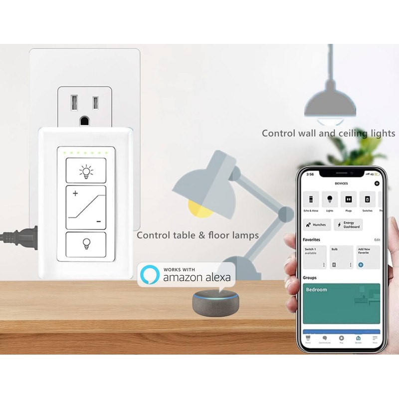- Voice-Controlled Dimming: Seamlessly control the brightness of your LED light bulbs, lamps, and string lights with voice commands via Alexa. (Note: Alexa device required)