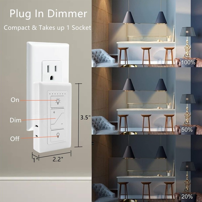 - Space-Saving Design: The compact design of this plug-in dimmer switch won't obstruct adjacent outlets, allowing you to use it in tight spaces.