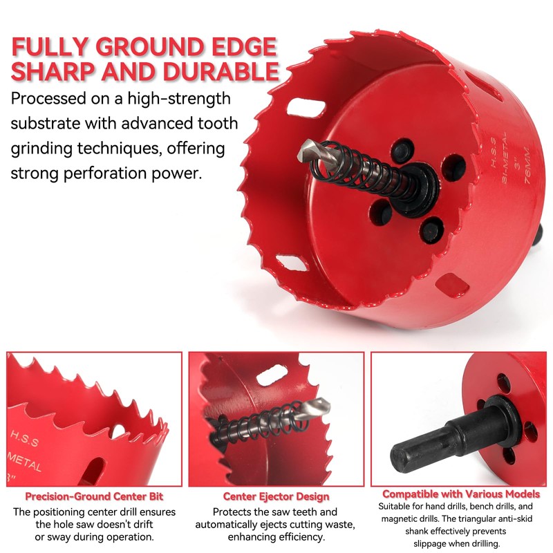 - [Durable Bi-Metal Construction for Long-Lasting Performance] The 2-inch and 3-inch hole saws are made with high-speed steel teeth and flexible steel bodies, ensuring clean, precise cuts through drywall, wood, thin metal, and plastic. With a 1.4-inch cutting depth, these hole saws are designed to handle a wide range of tasks, from installing can lights to creating recessed light openings, delivering reliable performance for both professional and DIY projects.