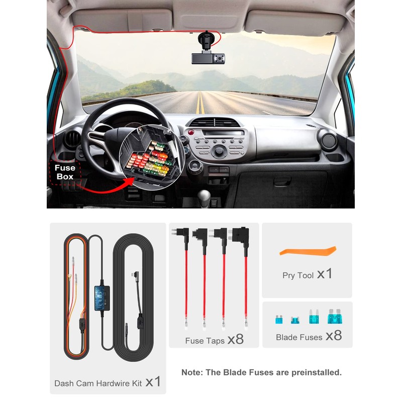 - 【Easy to Connect】It comes with all needed install tools and detailed instructions. You will get 1 x Dash Cam Hardwire Kit, 8 x Fuse Taps, 8 x Blade Fuses, 1 x Pry Tool, and 1 x User Manual.