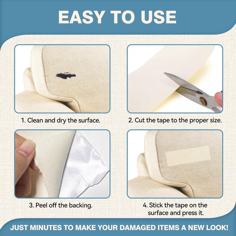 - Easy to Operate: Just takes a few minutes to make your items look new again! Before use, clean and dry the repair surface, and then cut the canvas tape into the proper size and shape. Peel off the backing and stick the canvas patch to the repair area. After that, just press it and let it adhere perfectly to the repair surface. This quick and convenient method can save you much repair time and help you solve the damage problem easily.