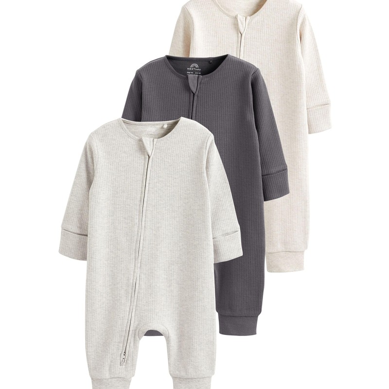 NEXT 3 Pack Footless Baby Pyjamas 2 Way Zip, neutral