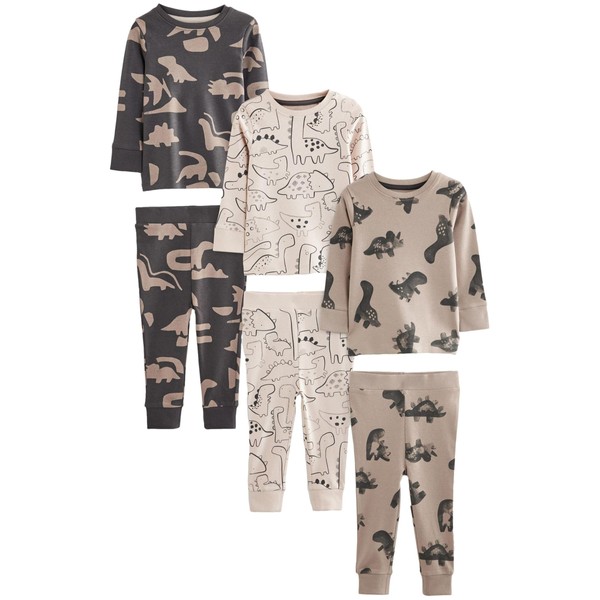 NEXT 3 Pack Long Sleeve Pyjamas, Neutral/Black Dinosaur