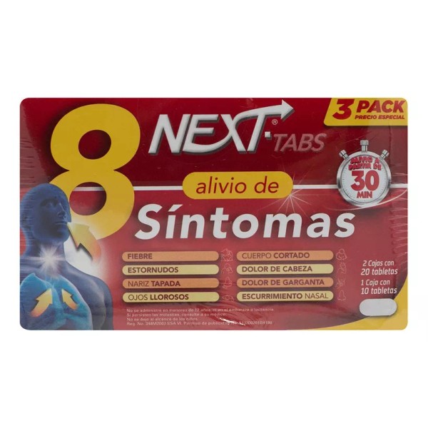 Next 3 Pack Next Tabs. Alivio Sintomas Resfriado Común