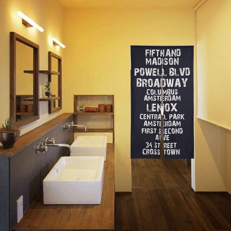 - A long noren, 59.1 inches (150 cm) design with a retro bath roll sign. Use it as a divider or hide your living room, kitchen, or room. Not only can it be used as a noren, but it can also be used to hide shelves, such as silver racks, metal shelves, steel racks, and other items