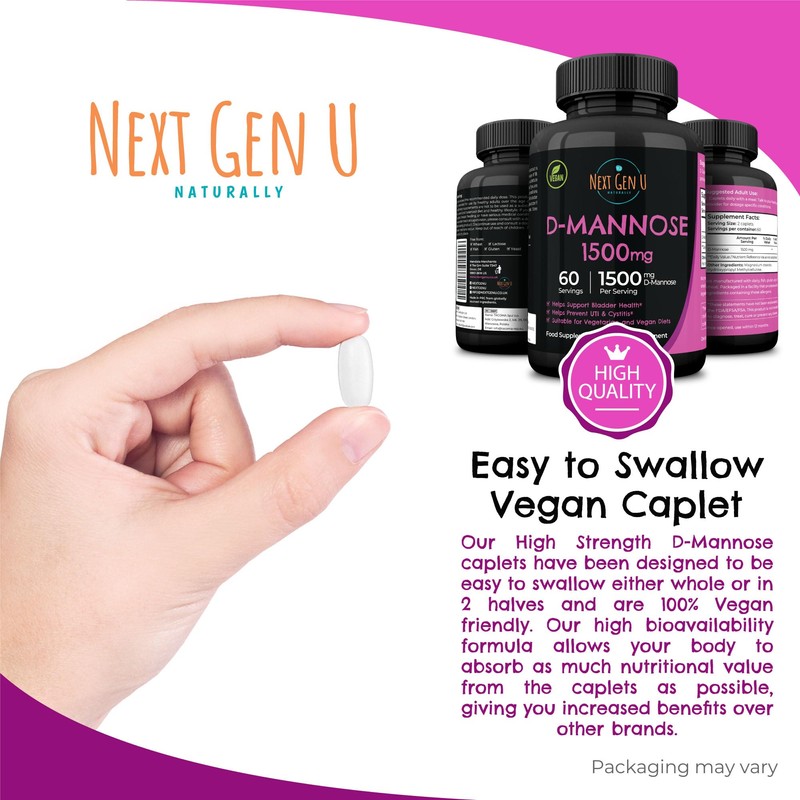 Next Gen U D Mannose - 1500 mg - Health Food & Dietary Supplement - 120 Vegan Caplets - May Help Support a Healthy Urinary Tract & Bladder - by NextGenU
