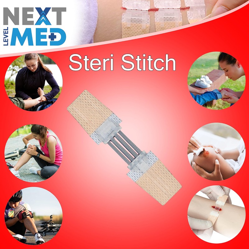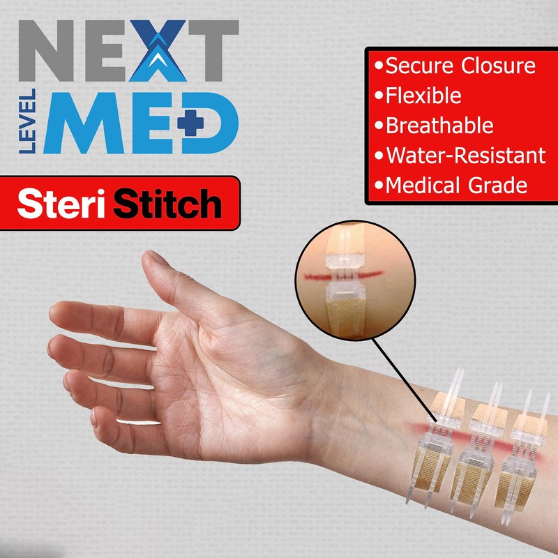 NEXT LEVEL MED Zip Stitch Wounds & Cuts Closure. First-Aid Kit Includes 3 Steri Stitch & 4 Zip Stitch, and Everything Else You Need to Treat Wounds and Cuts Without Stitches