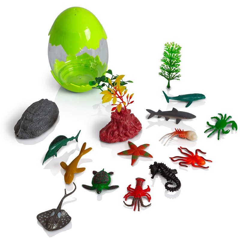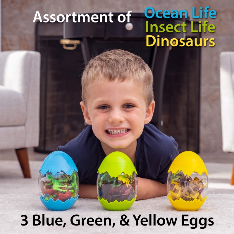 - Each surprise toy egg comes with 12 toys that include dinosaurs, insects, and ocean life