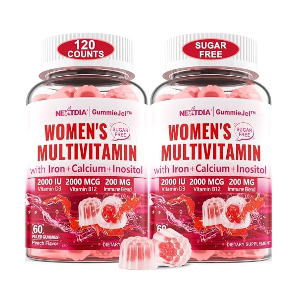 Nextdia (2 Pack) Sugar Free Methylated Multivitamin for Women Gummies with Calcium, D3 K2, Inositol, Folate, Biotin, Iron, Vitamin A, C, E, B Complex - Multi Vitamins & Minerals - Energy, Immune, Bone - Vegan