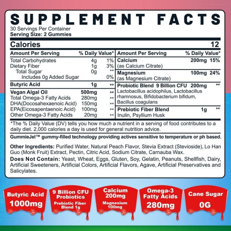 Nextdia Product Image Butyrate Gummies with Probiotic + Prebiotic + Postbiotic+Liposomal Glutathione Gummies