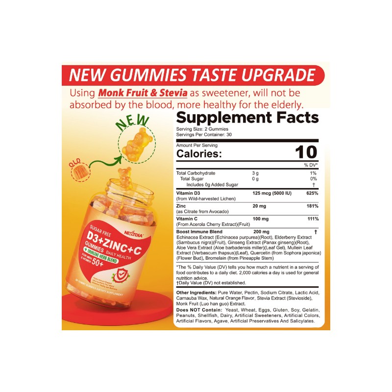Nextdia Vitamin D3 + C + Zinc with Lysine Filled Gummies
