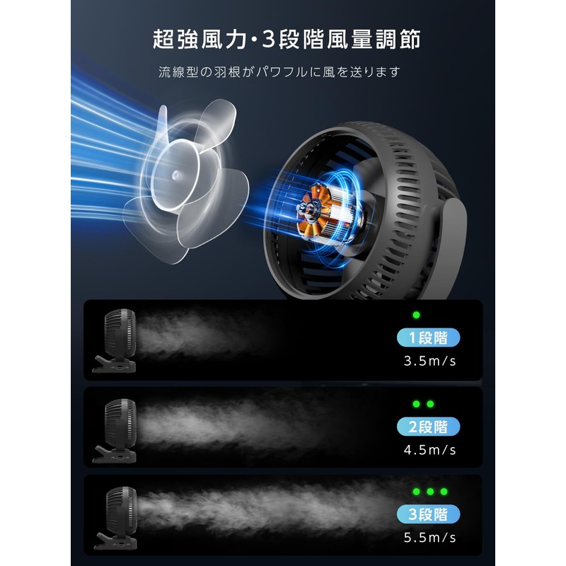 • 360° Omnidirectional Air Flow & 3 Levels of Air Flow Settings: The small fan can be manually adjusted to 360° up and down, allowing you to deliver comfortable air in any direction. You can adjust the airflow volume between 3 levels, weak, medium wind, and strong wind. Just press the button to select your preferred air flow. Streamlined wings deliver powerful wind and are perfect for hot summer days
