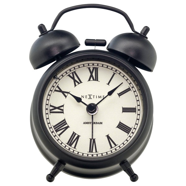 NEXTIME Table Amsterdam Small Table Clock, Alarm Clock, Stylish, Quiet, Bell, European Table Clock, Bedroom, Compact, Small, Cool