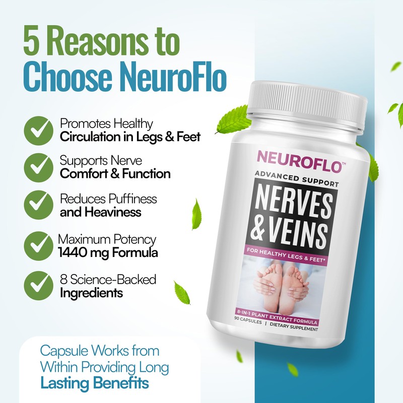 • Supports Healthy Nerve Function - Boost your body’s health with NeuroFlo. Made with an optimal formula containing horse chestnut extract, this nerve-support supplement helps address numbness, weakness, and discomfort on your hands, legs, and feet.