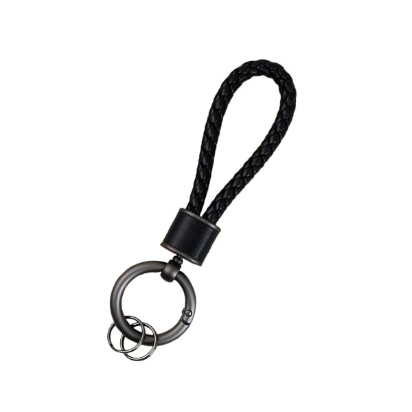 [Nexxxly] ネクスリー キーホルダー カラビナ キーチェーン リング付き プレゼント ギフト レザー バイク レディース メンズ お揃い 車 編込み 自転車 自動車 友情 記念日 男女兼用 (ブラックブラック)