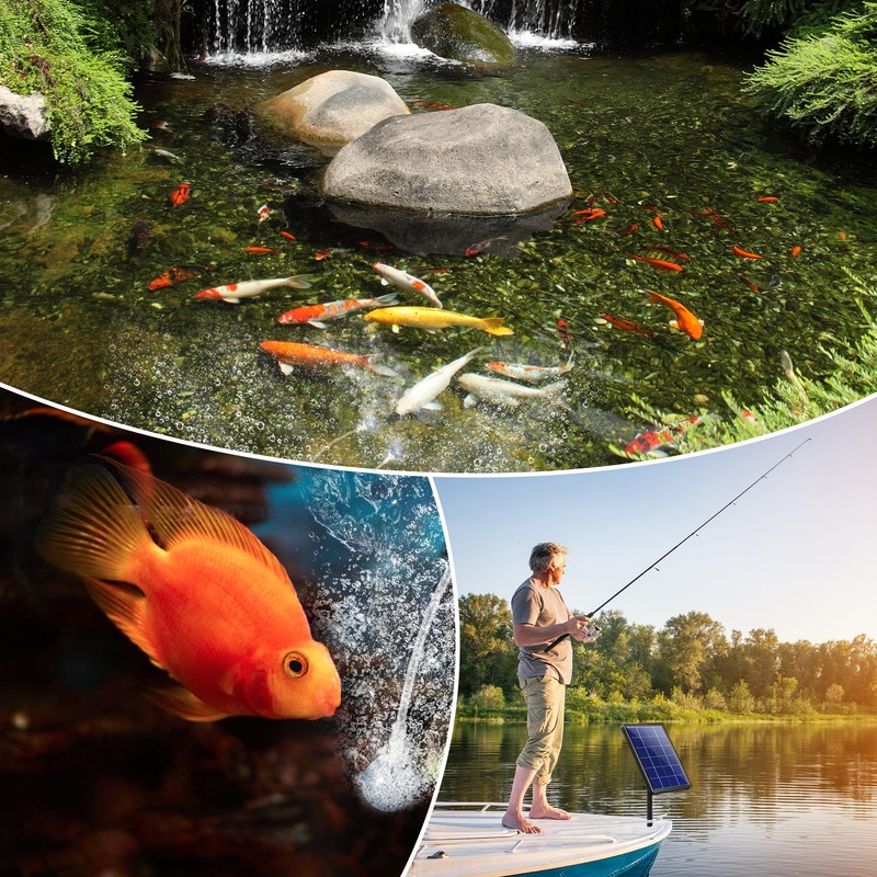- Solar Aerator OutdoorDesigned for outdoor use, uses solar energy and is waterproof. The solar aerator can improve water quality and provide fresh oxygen to fish or plants in outdoor water. Suitable for use in stock tank or small pond up to 80 gallons.