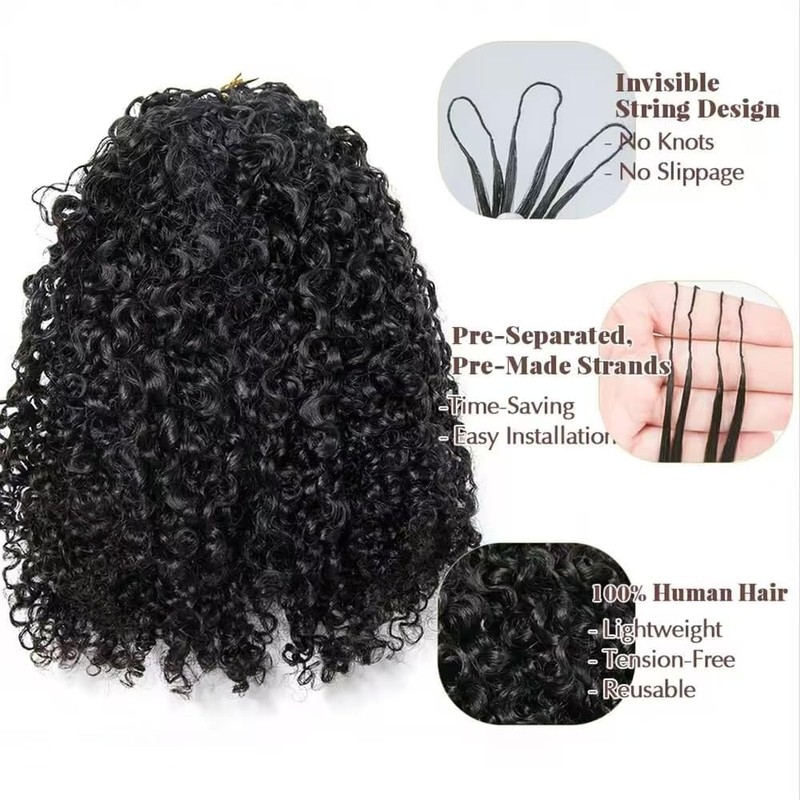 NFHAIR 100% Human Hair Knotless Pre-Separated Crochet Hair Extensions Human Hair Afro Kinky Curly Feather Crochet Human Hair Extensions With String In The Middle For Braids 18inch 120g
