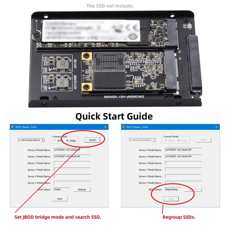 Dual MSATA NGFF B+M SSD can work at one SSD with JOBD Raid Mode.