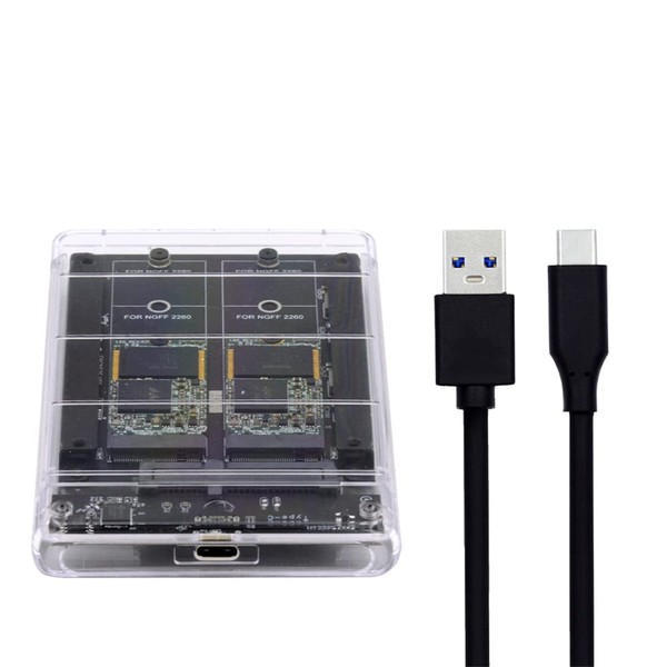 NFHK Dual NGFF B+M-Key M.2 SSD Card JOBD Raid0 Span Bridge to USB3.0 Type-C USB-C 2.5inch SATA Combo Enclosure