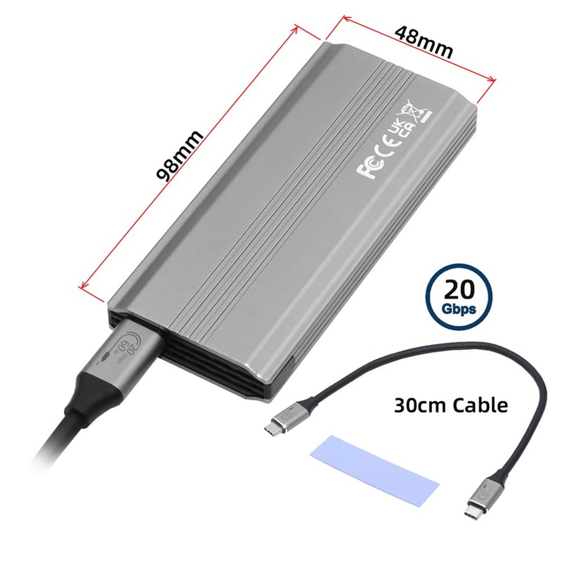 NFHK Type-C USB3.2 USB4 20Gbps to M-Key M.2 NGFF NVME SATA SSD PCBA Enclosure 2280/2242/2260mm RTL9220
